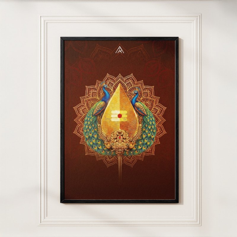 Enhance fame, courage, and career success with Murugan Kartikeya’s Vel Vastu painting for South direction. Premium spiritual artwork with gold foil option.
