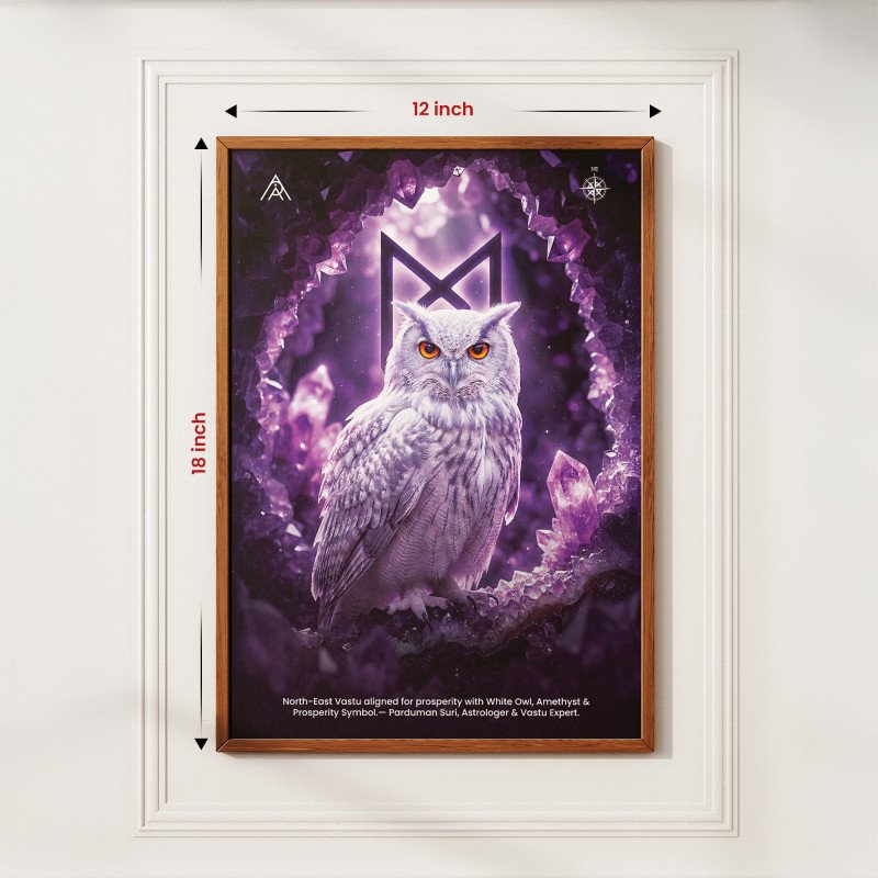 Enhance wealth, wisdom, and positivity with North-East Vastu White Owl Painting energized by Amethyst crystal energy. Ideal for home & office prosperity.