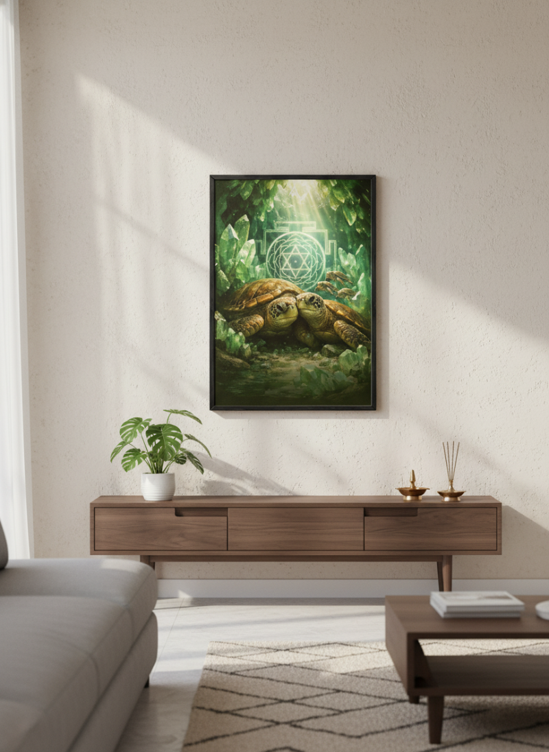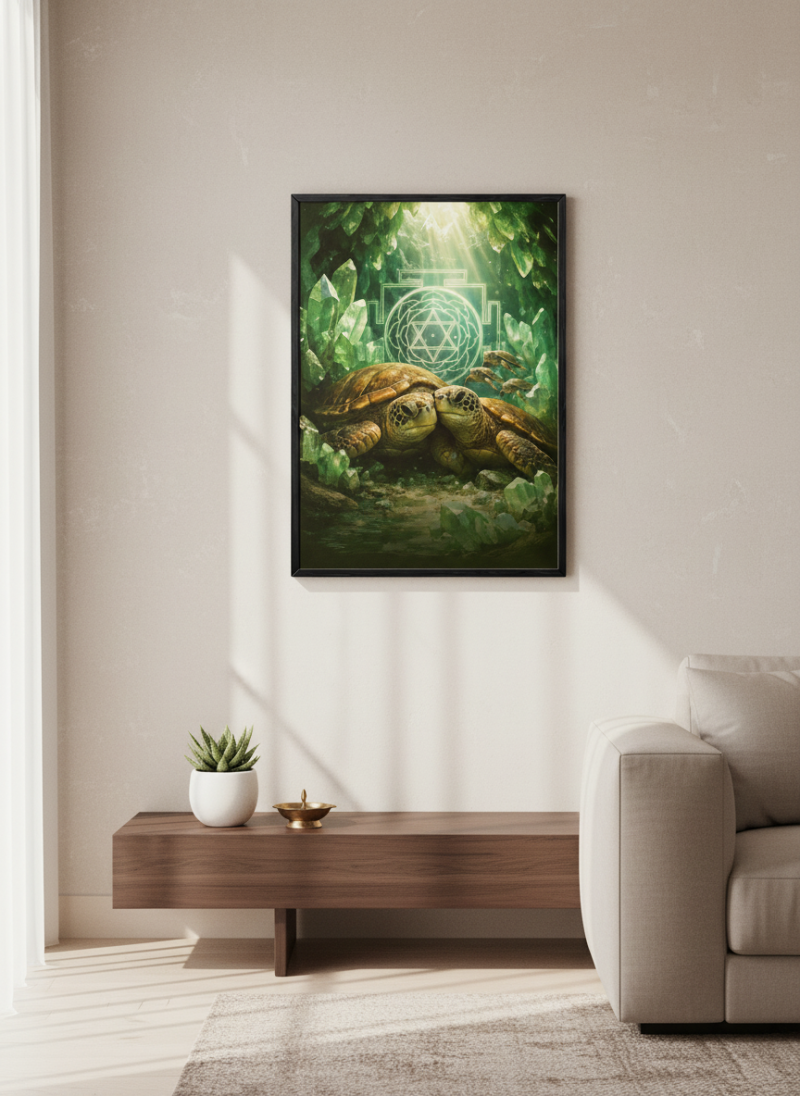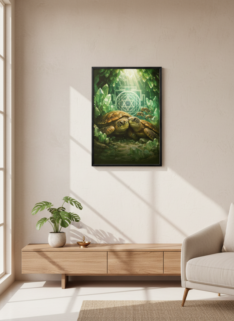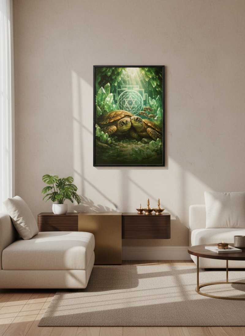 Vastu Turtle Family Painting for prosperity, stability and protection. Ideal for home & office, aligned with Kubera energy and positive wealth vibrations.