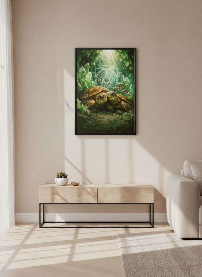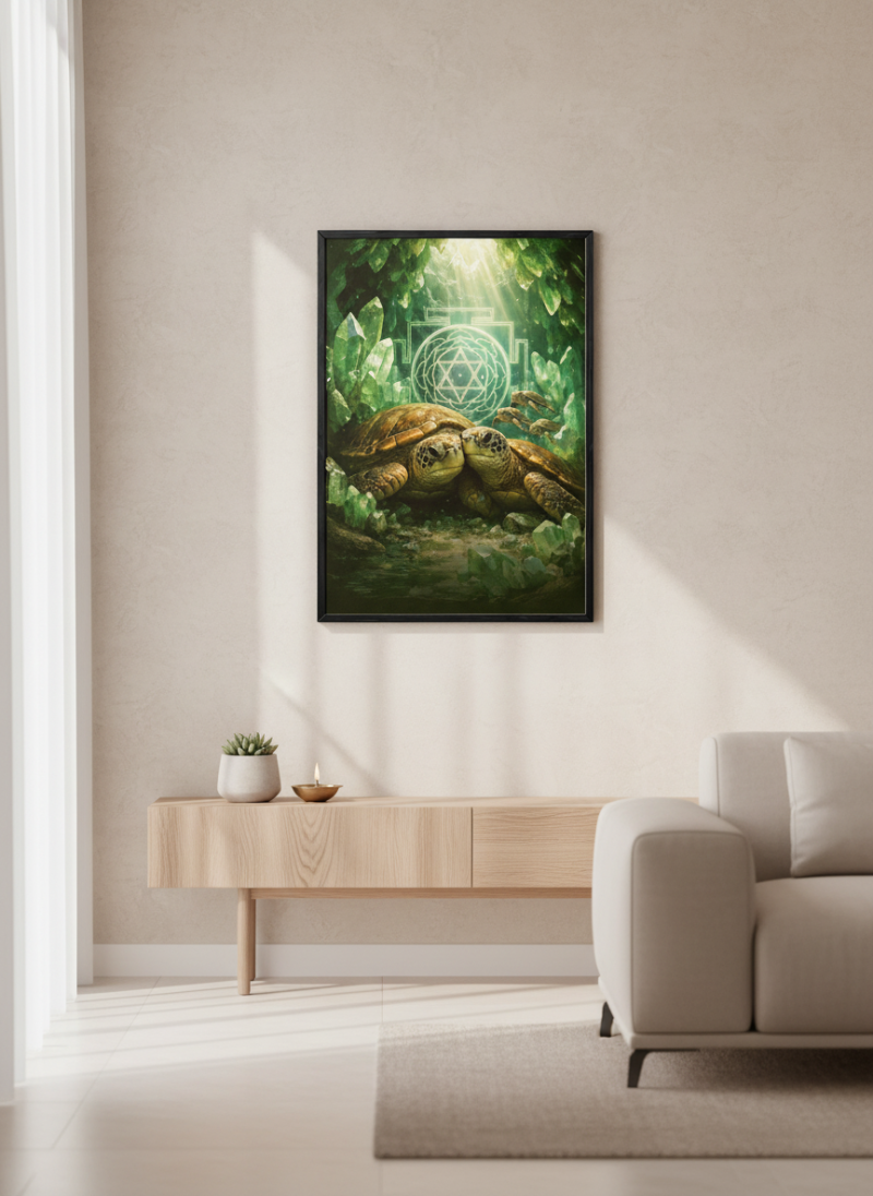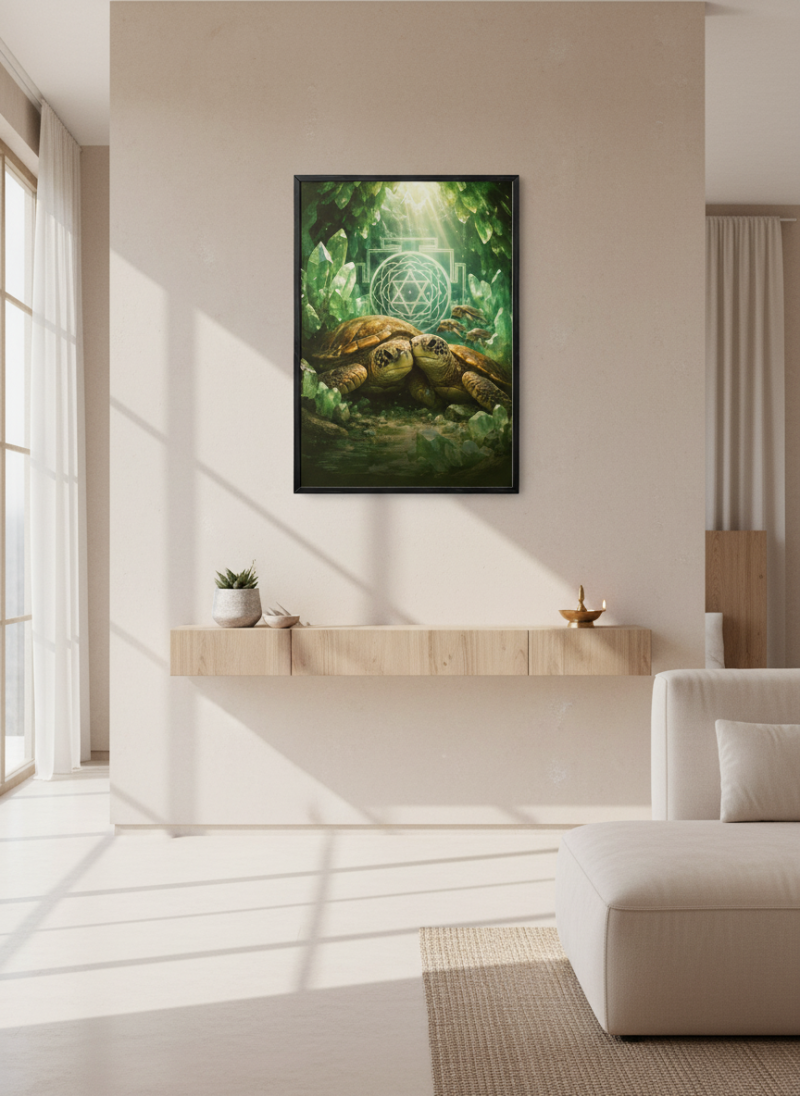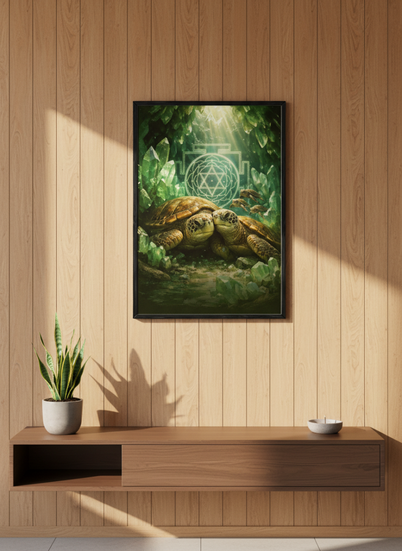 Vastu Turtle Family Painting for prosperity, stability and protection. Ideal for home & office, aligned with Kubera energy and positive wealth vibrations.