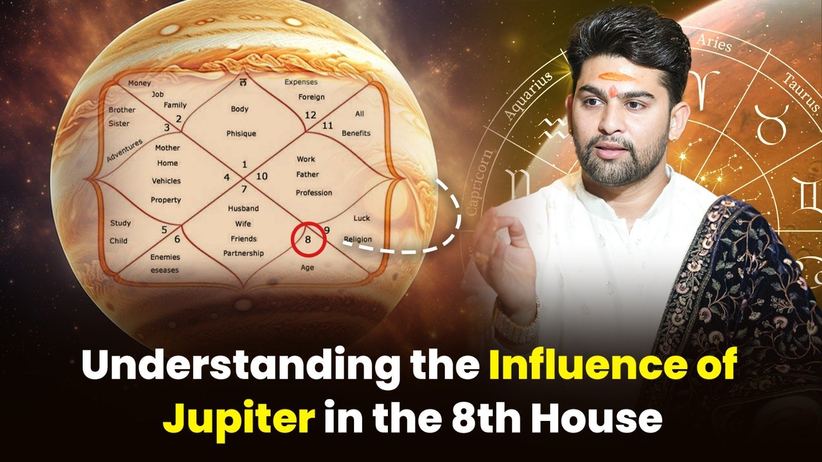 Positive Effects of Jupiter in the 8th House Jupiter, known as the planet of wisdom and knowledge, brings several advantages when situated in the 8th house: