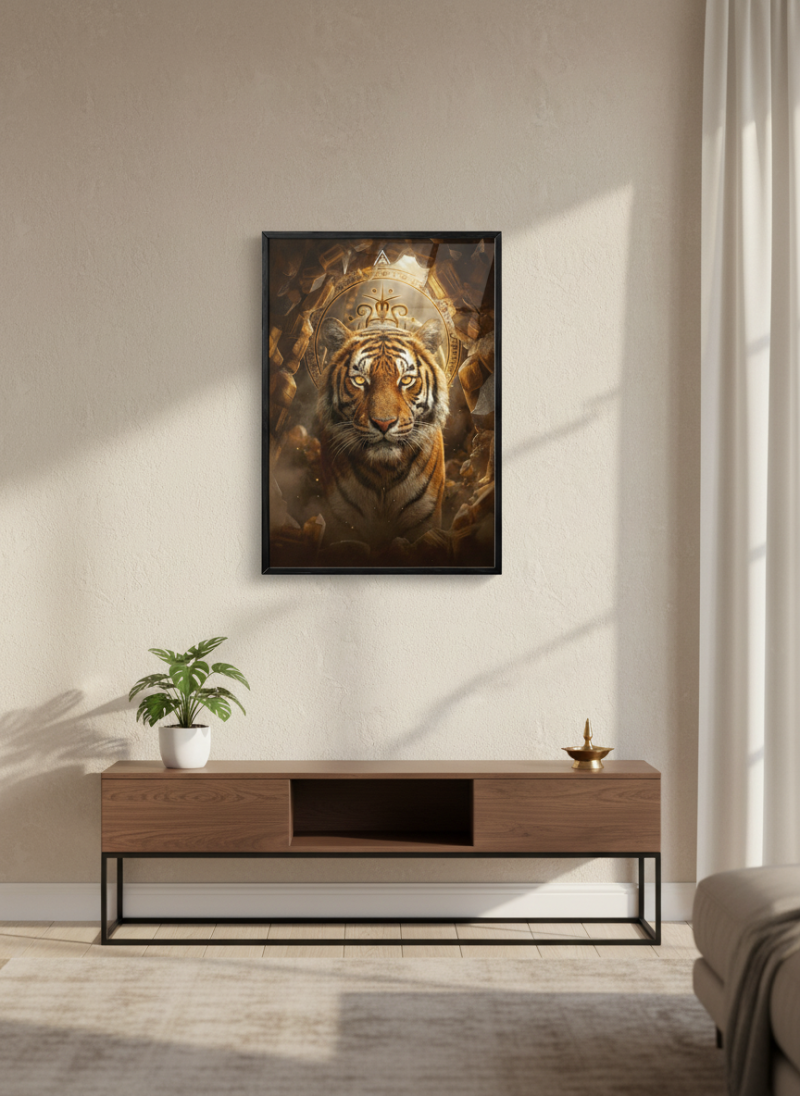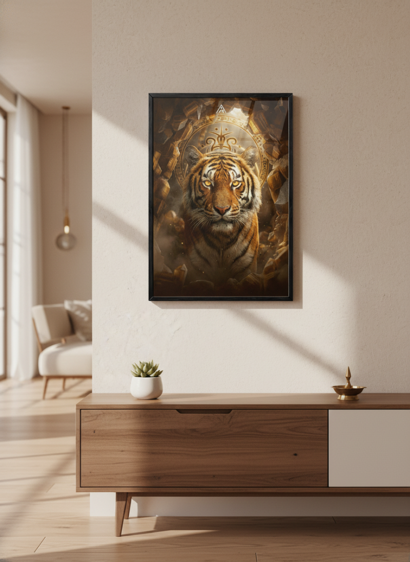 Vastu Tiger Power Painting for stability, courage and authority. Ideal for offices and homes to remove fear, build confidence and strengthen decision-making.