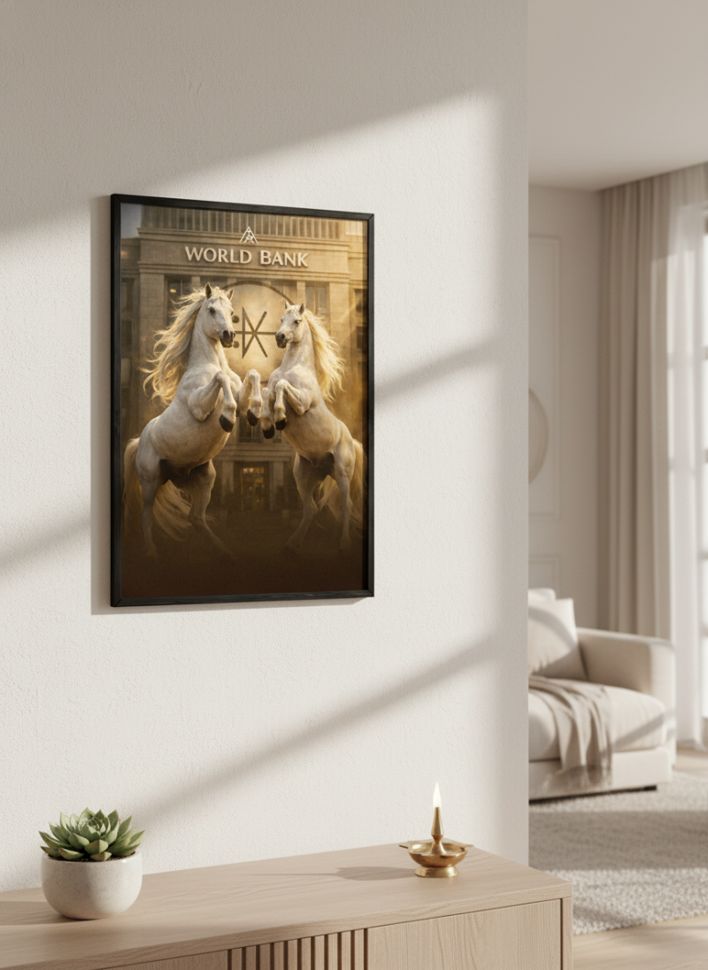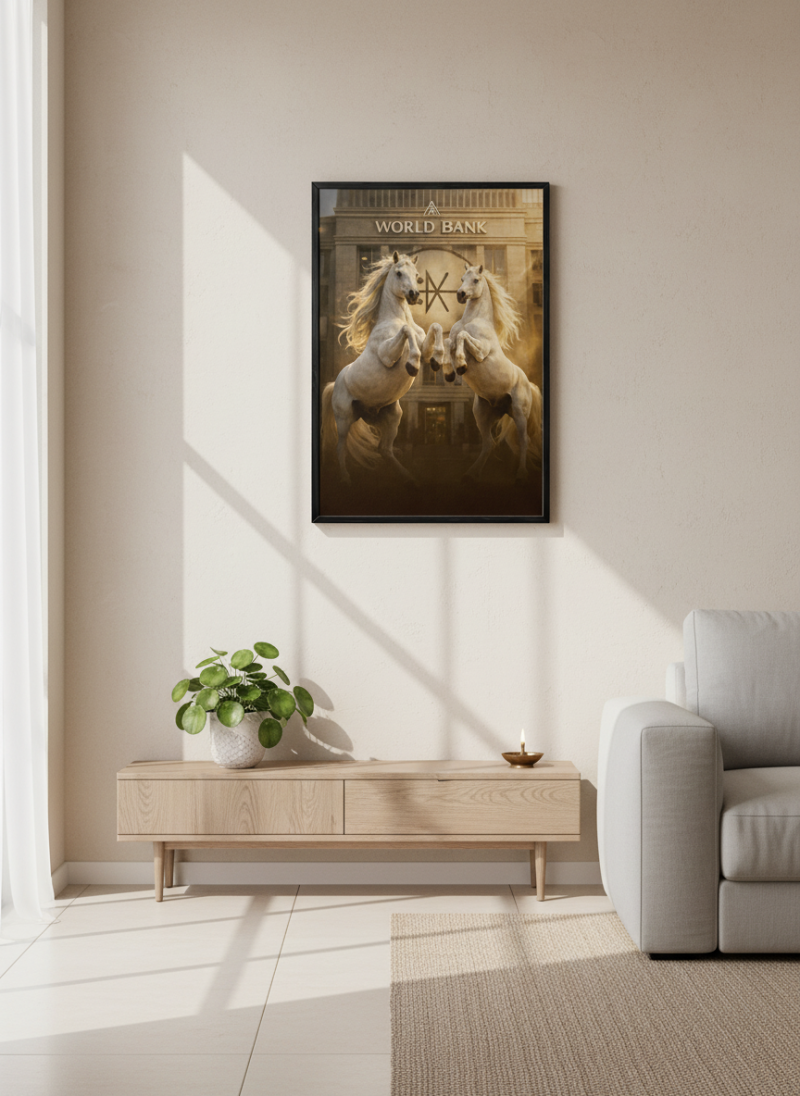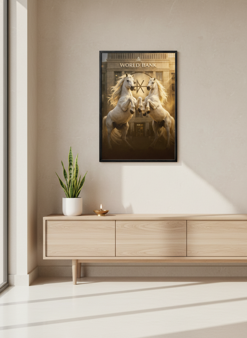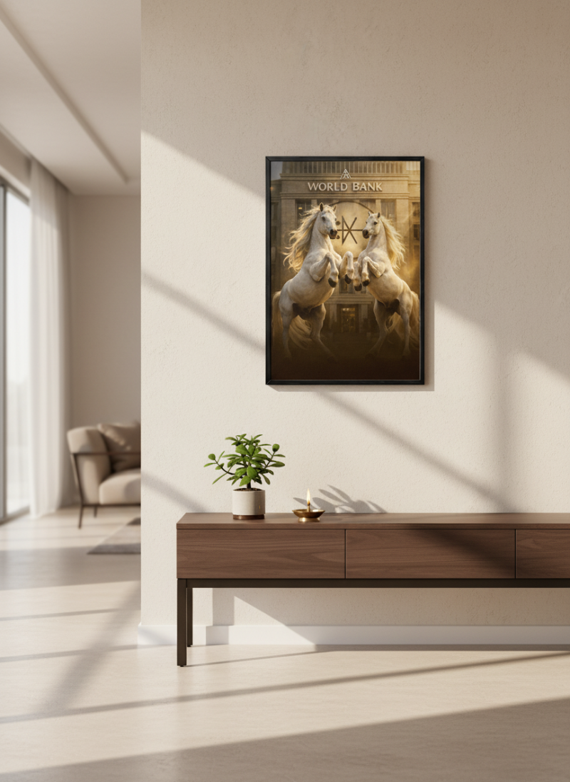 Vastu White Horse Pair Painting for wealth flow, success and authority. Ideal for North-West placement to boost cash flow, business growth and financial momentum.