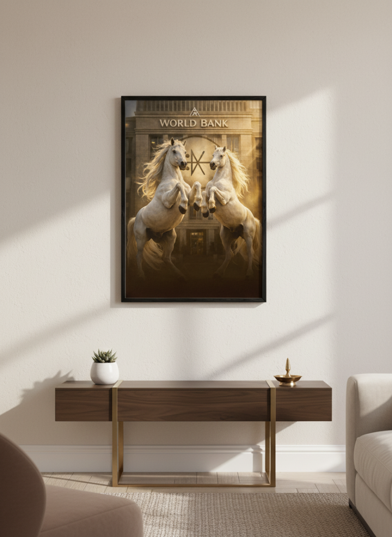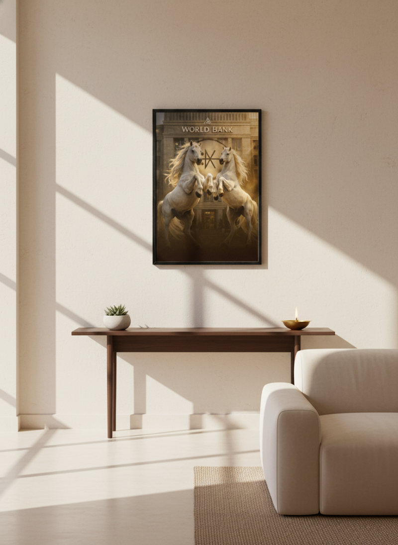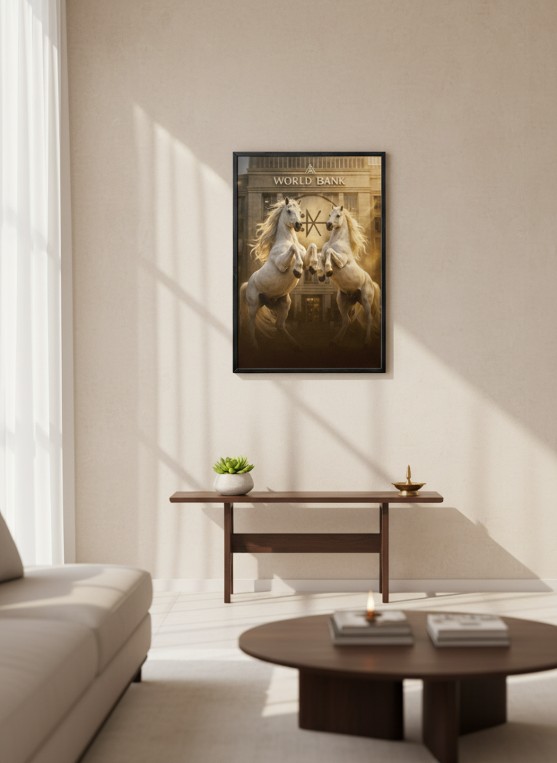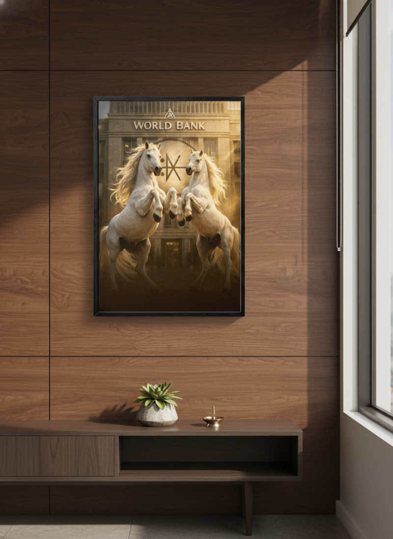 Vastu White Horse Pair Painting for wealth flow, success and authority. Ideal for North-West placement to boost cash flow, business growth and financial momentum.