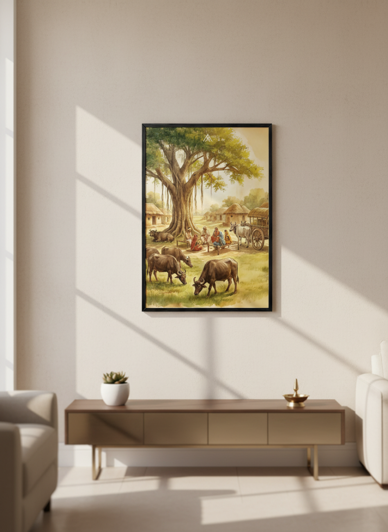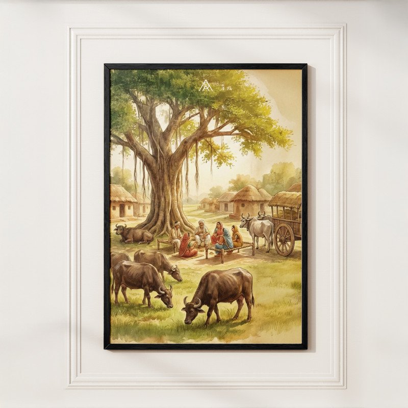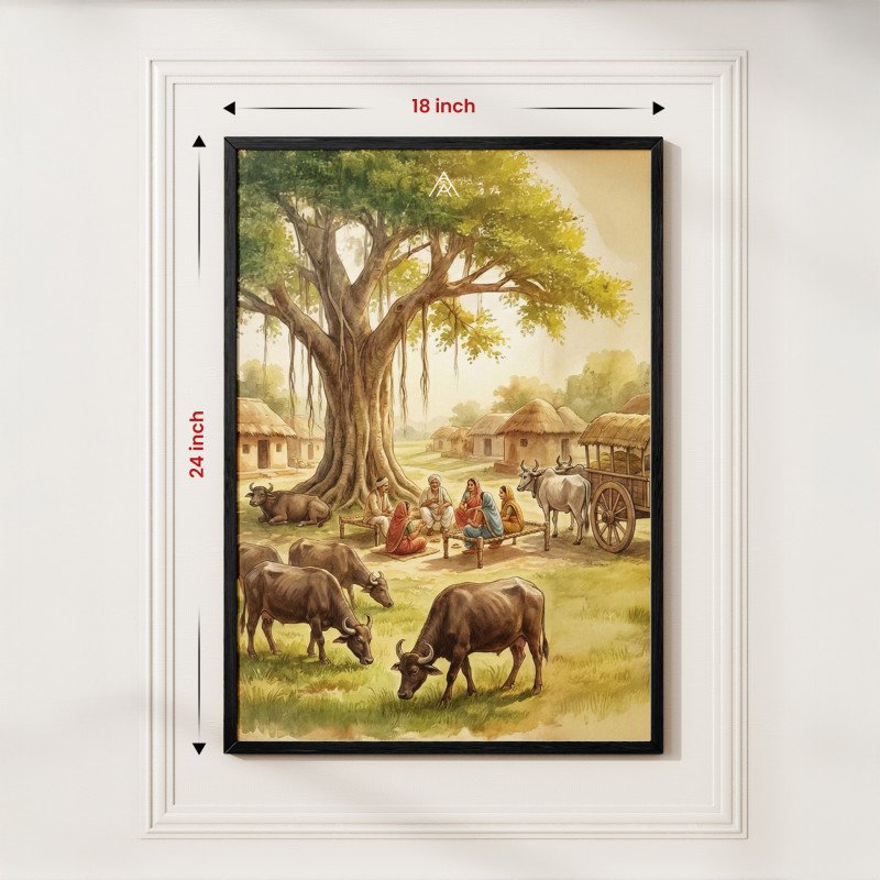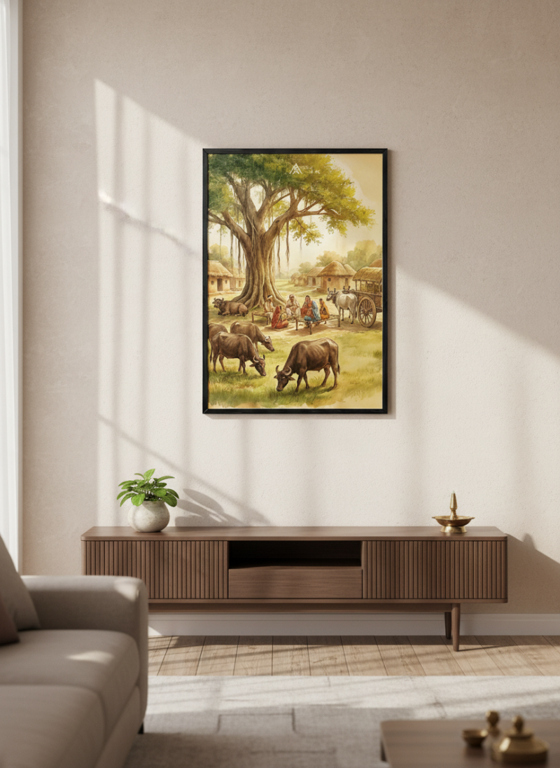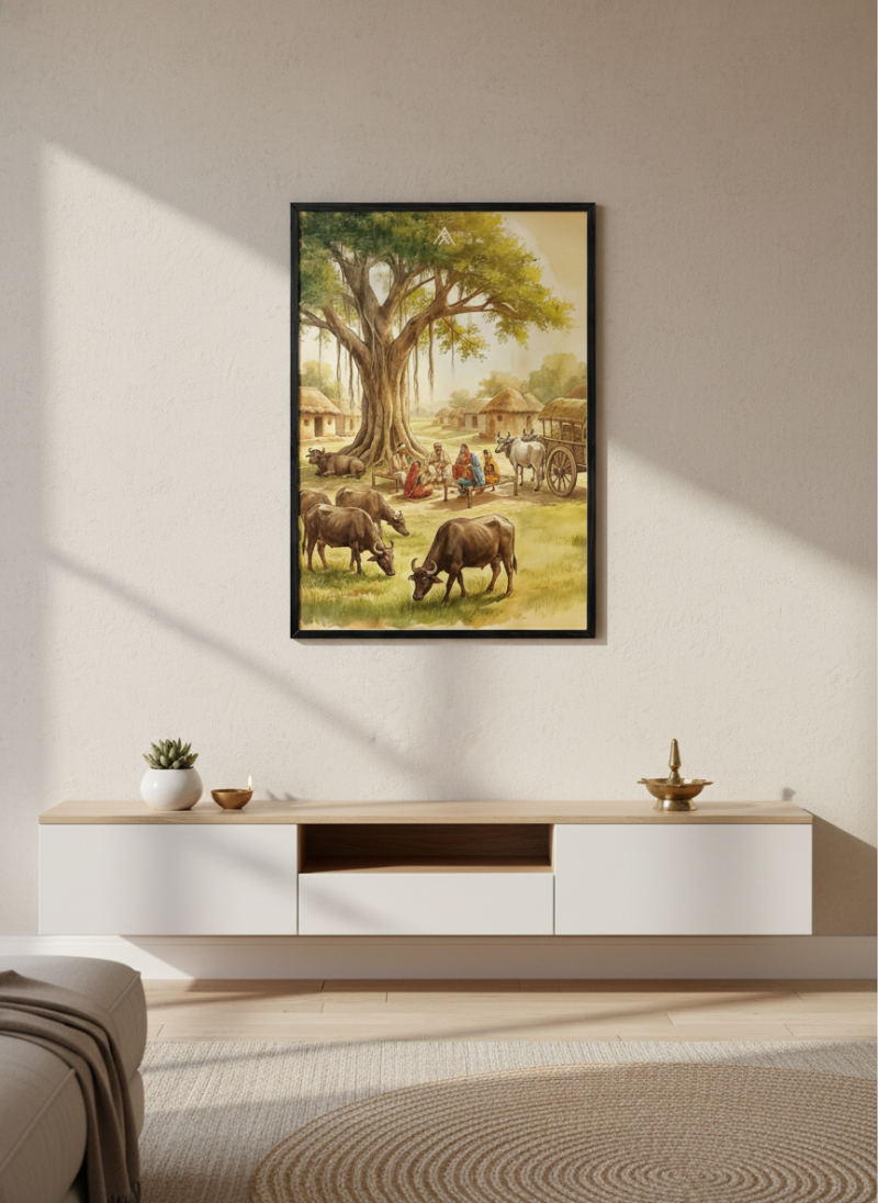 Activate stability, authority, and long-term prosperity with this powerful West Vastu painting featuring grounded energy and harmonious village life.